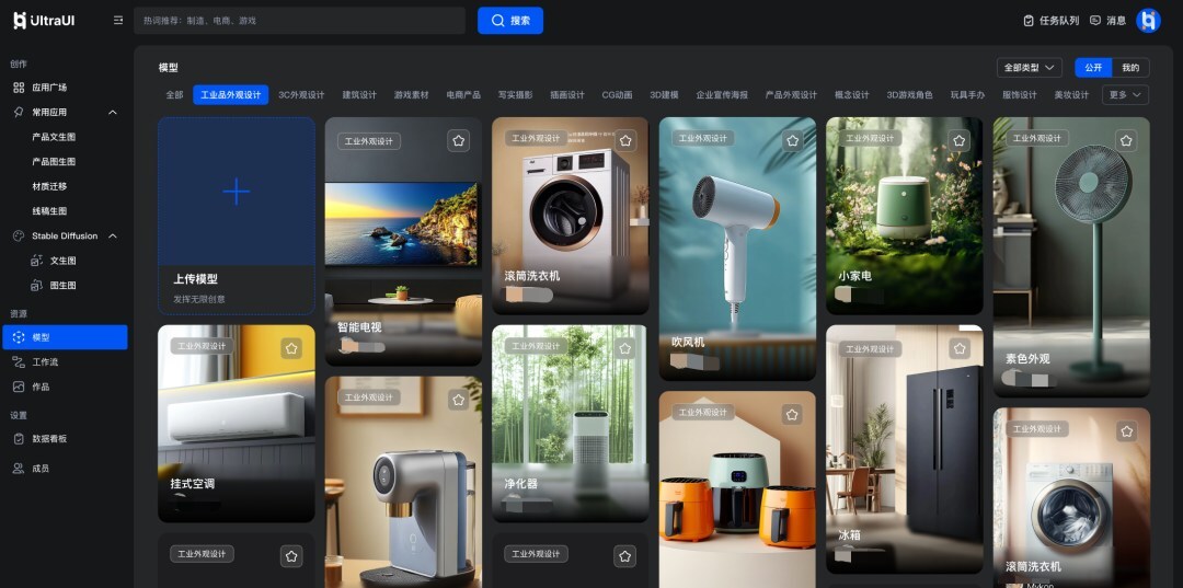 - UltraUI:企业级AI生图平台,面向制造、游戏、电商等行业,提供行业预设的AI生图能力,助力企业构建定制化生成式AI应用,应对复杂的设计流程和资源管理挑战。