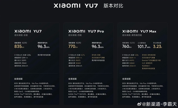 小米YU7全系标配碳化硅高压平台;