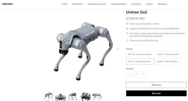 2023年,宇树科技发布了消费级机器狗Go2和人形机器人H1,其中Go2的售价仅为9997元,将消费级机器狗价格控制在万元以内。