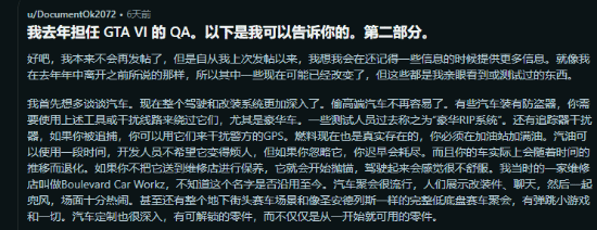 日前,Reddit社区一位自称是《GTA6》前QA测试人员的网友曝出了游戏大量情报和细节。