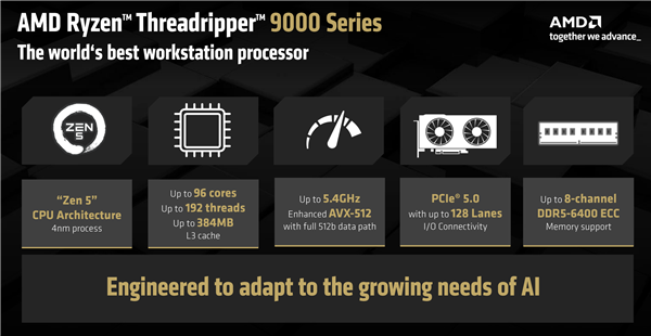 9995WX 96核心128线程、9985WX 64核心、9975WX 32核心、9965WX 24核心、9955WX 16核心、9945WX 12核心。