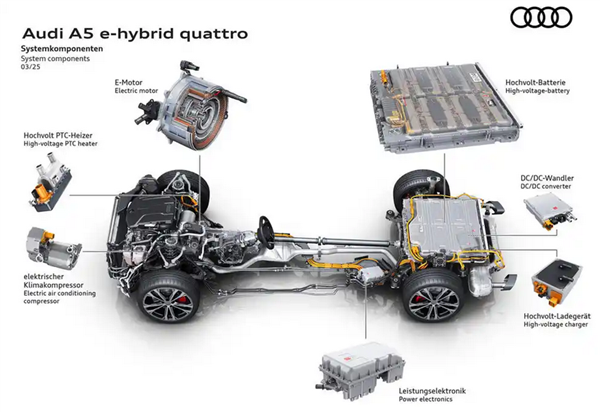 快科技3月26日消息,日前,全新奥迪A5 PHEV的官图正式发布,奥迪首次在其中型轿车产品线中引入插电式混合动力系统。